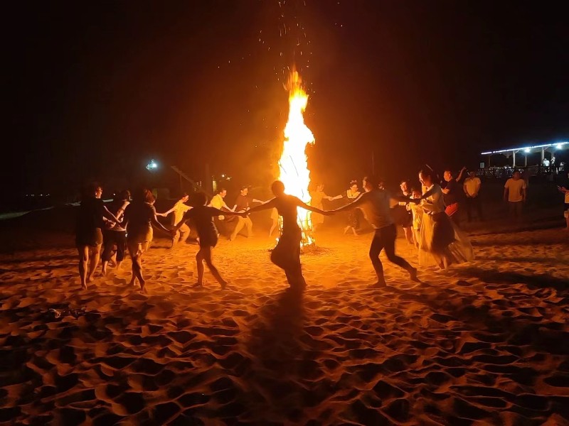 酒酣耳熱之際,沙灘上升起了一堆篝火,頓時燃爆了整個活動現場。大家來到沙灘上,手牽手,圍成一圈,伴隨著節奏強勁的音樂舞蹈起來,歡呼著,雀躍著,宣泄著海西人的熱情與奔放。最后,隨著幾十枚煙花在空中綻放,把狂歡的PARTY推向最高潮。此時此刻,大家拋棄炎熱、疫情、一切的煩惱憂愁,沉浸在充滿活力的歡樂中……